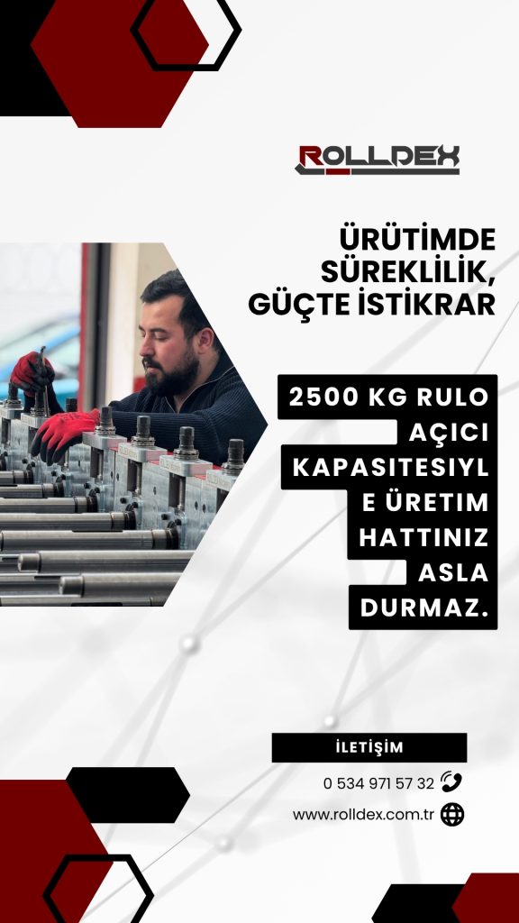 15 yıllık tecrübe, ve deneyimli kadrosu ile 2022 yılında kurulan ROLLDEX Machinery Bu proje doğrultusunda rollform makinelerimizi üstün ve güvenilir kalitede üretmek ve müşterilerimize çözüm ortaklığı sunmaktayız.