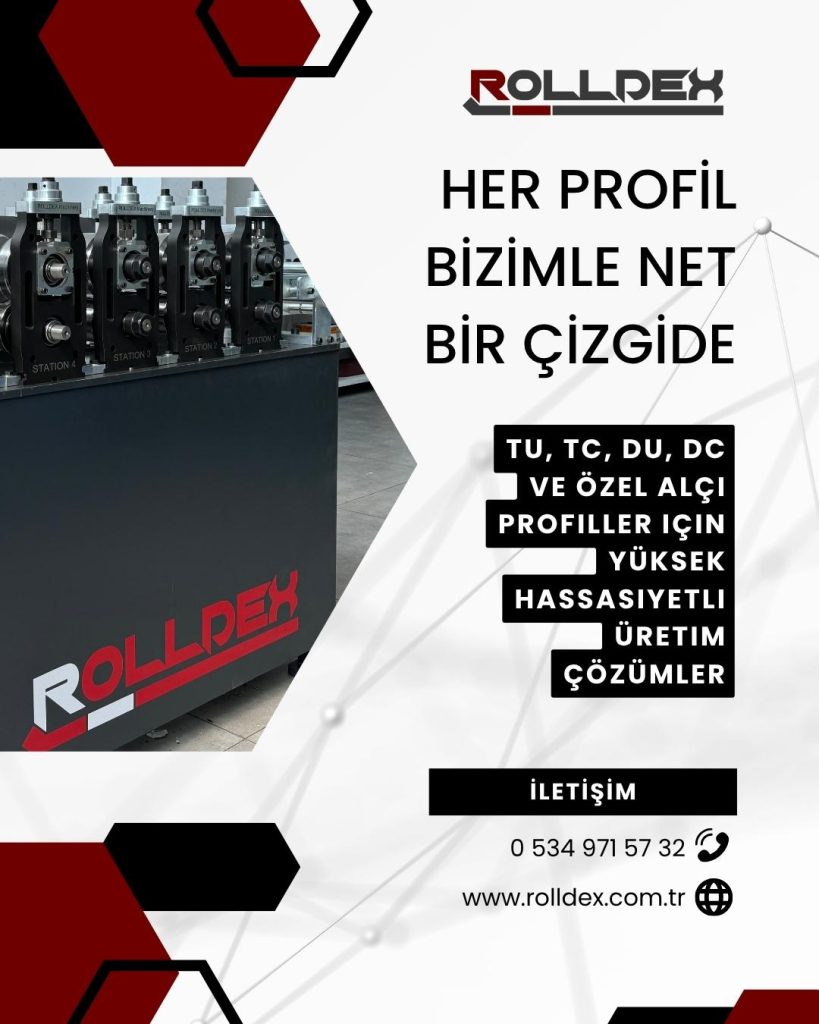 Makine imalat ve savunma sanayi sektörü içerisinde yer alan firmamız inşaat sektörüne yönelik üretmiş olduğu yüksek standartlı ve hassasiyetli makinaları ile Türkiye inşaat sektörüne katkı vermektedir. Gerekli kalite belgelerine sahip olan rollform makinalarımız ve rollform üretim hattımız ile yüksek kalitede ve standartlarda sac metale şekil verilerek profil ve köşe profil imalatı yapılmaktadır. 15 yıllık deneyimiz ile ürettiğimiz kaliteli rollform makine çeşitlerimiz bir Türk markası olan ROLLDEX Machinery iş güvenliği ve çevre faktöründen taviz vermediği gibi üretimini yaptığı rollform makine ürünlerinde de kaliteden taviz vermemektedir.